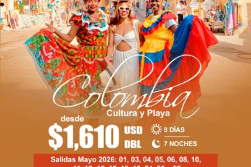 COLOMBIA CULTURA Y PLAYA MAYO 2026 Salidas Mayo 2026: 01,03,04,05,06,08,10,11,12,15,17,18,19,24,25,26 ITINERARIO Día 1. MONTERREY- BOGOTÁ Cita en el aeropuerto de la ciudad de Monterrey para tomar su vuelo con destino a la ciudad de Bogotá. Llegada, asistencia en el aeropuerto y traslado al hotel. Día 2. BOGOTÁ – VISITA DE Leer más